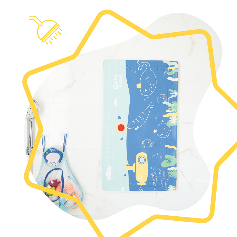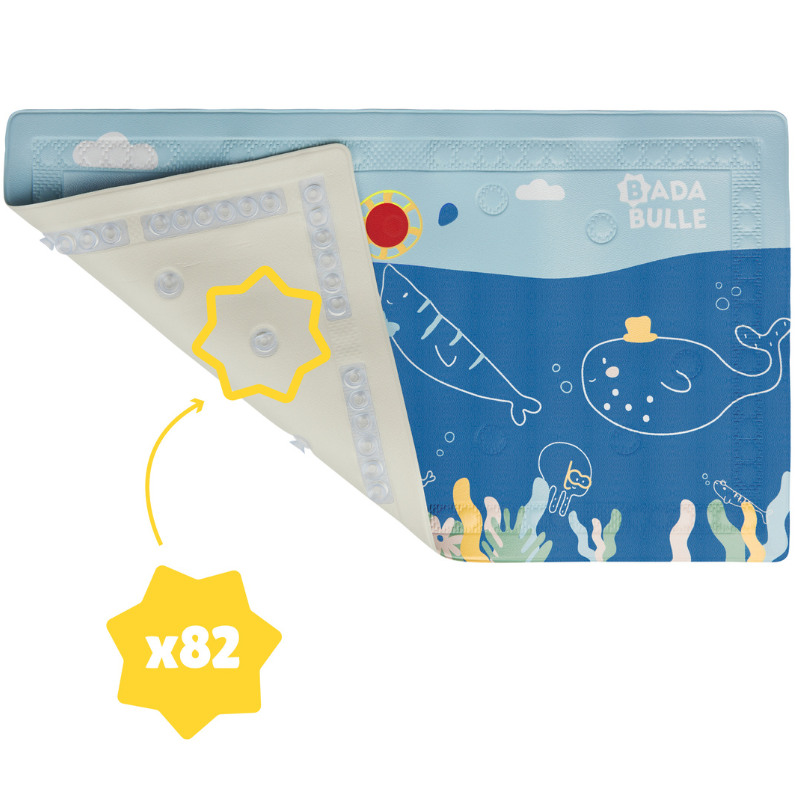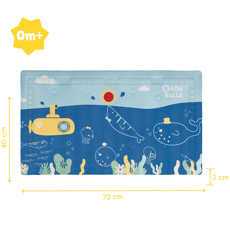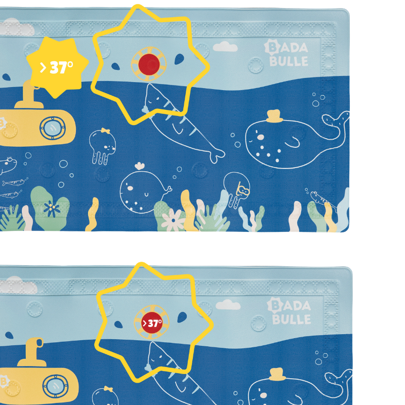 Skridsikker bademåtte Den skridsikre bademåtte beskytter dit barn mod at glide på det glatte, våde badevarelsesgulv og har temperaturindikator, som sikfter farve, når vandet når 37C, så du kan sikre dig den korrekte temperatur. Bademåtten er praktisk at bruge både til badekar og bruser og har et smukt farverigt design.