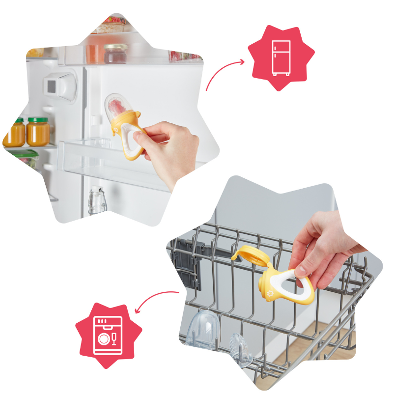 Denne frugtsut er udviklet med et ergonomisk håndtag, som er let for små hænder at holde fast i, hvilket understøtter barnets motoriske udvikling. Selve suttedelen er fremstillet af blød og hygiejnisk silikone, der er skånsom mod ømme gummer. Du kan med fordel fylde den med kølig frugt for at lindre ved tandfrembrud. Barnet kan sikkert sutte saft og smag ud af indholdet uden risiko for at få store stykker mad galt i halsen.