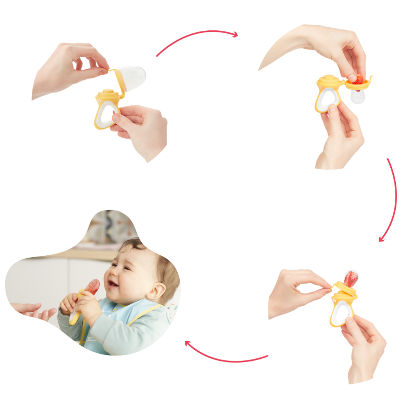 Produktet er perfekt til forældre, der ønsker at introducere nye fødevarer på en kontrolleret og sikker måde. Frugtsutten fremmer barnets evne til at spise selv og gør madoplevelsen sjov og selvstændig. Det er en enkel og effektiv løsning, der gør overgangen til fast føde til en leg for både barn og forælder, og som kan bruges igen og igen i hverdagen.