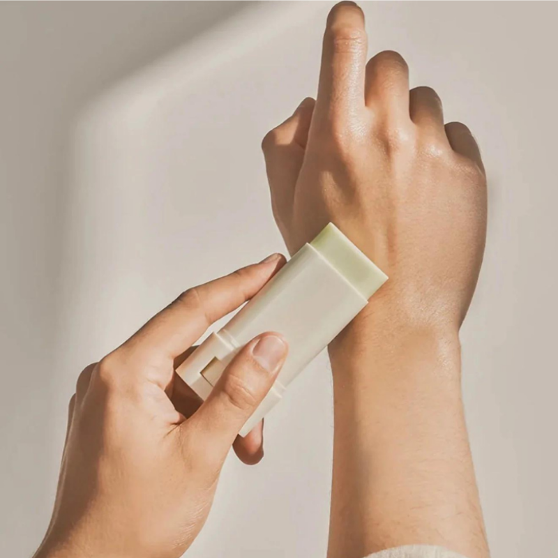 Solstiften er utrolig praktisk og kan let påføres direkte over makeup. Den er beriget med artemisia capillaris (mugwort), der giver en let, kølende følelse, mens grøn te-ekstrakt og camellia frøolie bidrager med fugt og beroligende pleje. Produktet er baseret på plantebaserede ingredienser og er desuden vandafvisende og parfumefri.