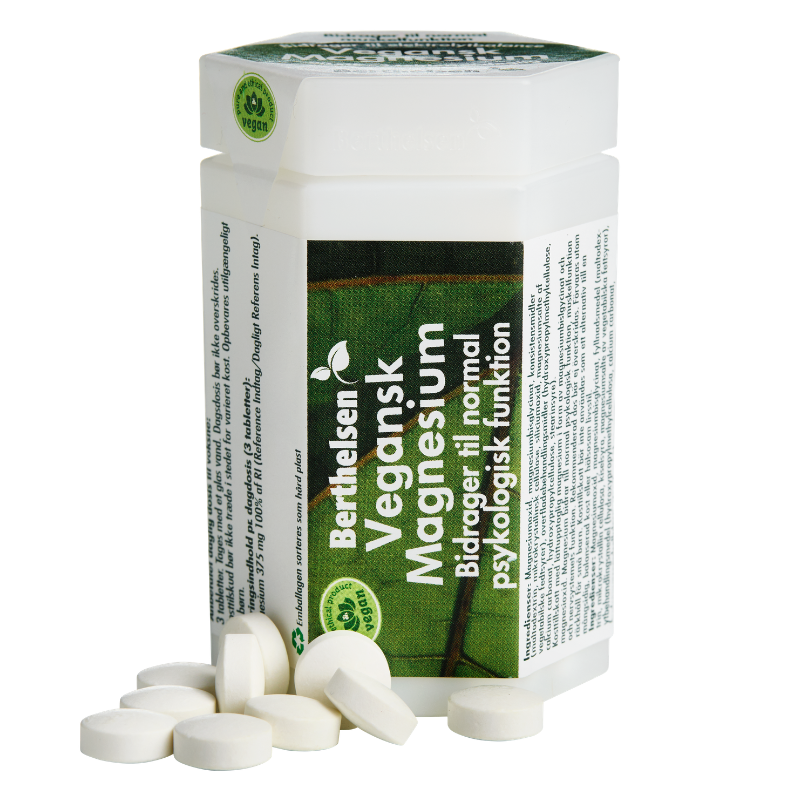 Berthelsen Magnesium er et vegansk magnesiumtilskud baseret på to magnesiumkilder. Kombinationen af aminocheleret magnesiumbisglycinat og magnesiumoxid er udvalgt for at bidrage med magnesium. Produktet er formuleret med fokus på at indeholde magnesium i en velafbalanceret sammensætning, som kan indgå i en varieret kost.