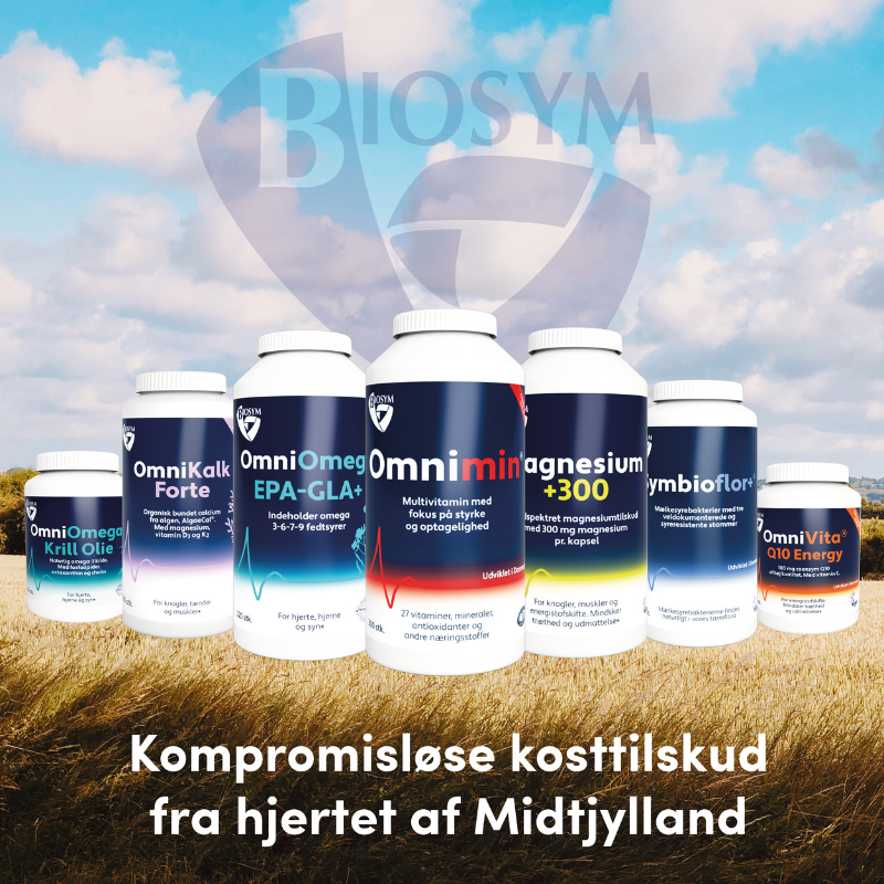 Siden 1986 har Biosym arbejdet målrettet med at forbedre livskvaliteten gennem kosttilskud baseret på forskning, kvalitet og naturlige ingredienser. Med et stærkt fokus på innovation og skandinaviske behov udvikler Biosym produkter, der produceres, pakkes og kvalitetskontrolleres på eget lager i Ikast. I dag er Biosym blandt Nordens førende producenter af kosttilskud.