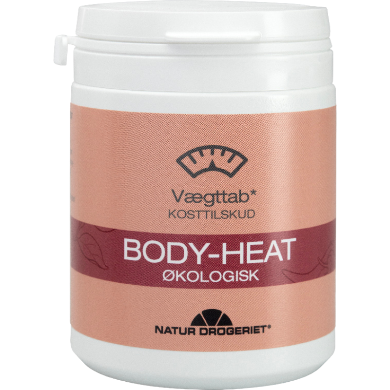 Body-Heat kapsler 120 stk Øko Body-Heat er et kosttilskud med pulveriseret chili/cayennepeber, som bidrager til vægtreduktion - her i en økologisk version. Cayennepeber er et chiliprodukt. Den stærke smag fra chili skyldes stoffet capsaicin. Chilipeber er i familie med sød peberfrugt, men indholdet af capsaicin er op til 30 gange højere i chilipeber. Med Body-Heat får du cayennepeber i kapsler, så du undgår følelsen af skovbrand på tungen og smagsløgene.