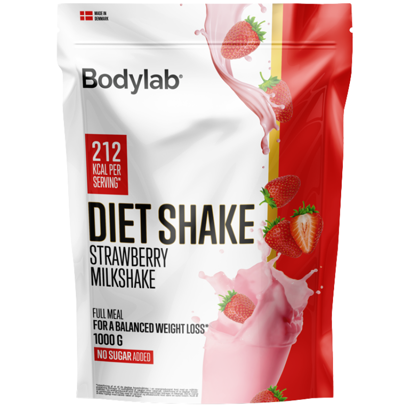 Diet Shake Strawberry Milkshake Bodylab Diet Shake er et kalorielet måltidsalternativ til en travl hverdag. Den er lavet med mælkeprotein og beriget med 23 vitaminer og mineraler.Godt at vide: