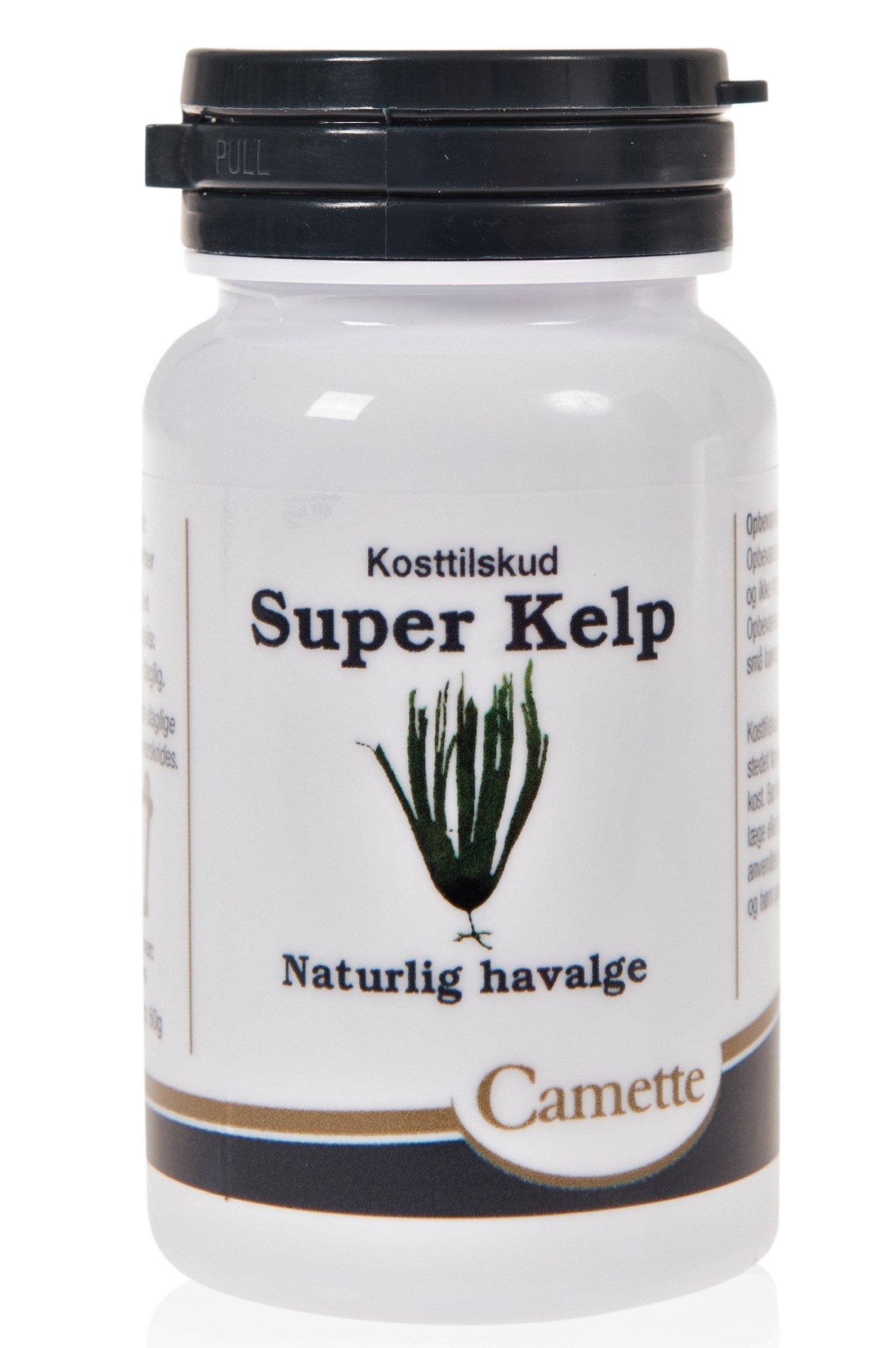 Produktinformation om Super Kelp tang (100 tabletter): Super Kelp tang fra Camette, er et kosttilskud med den havplanten kelp, der vokser på 400 meters dybde i de store have.