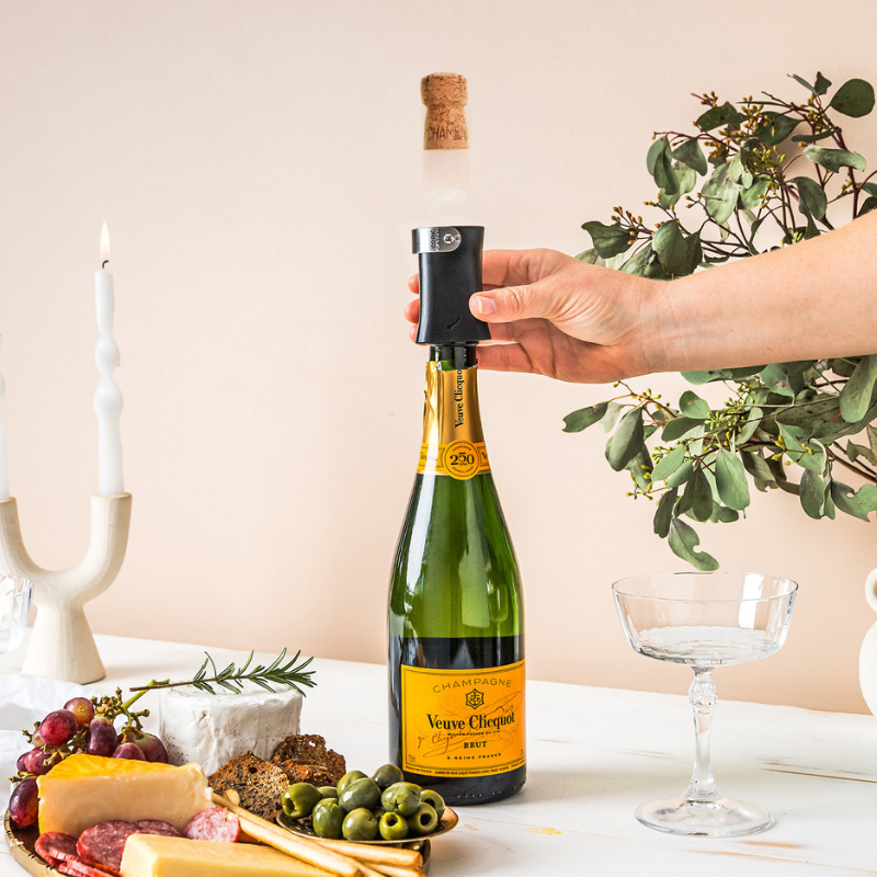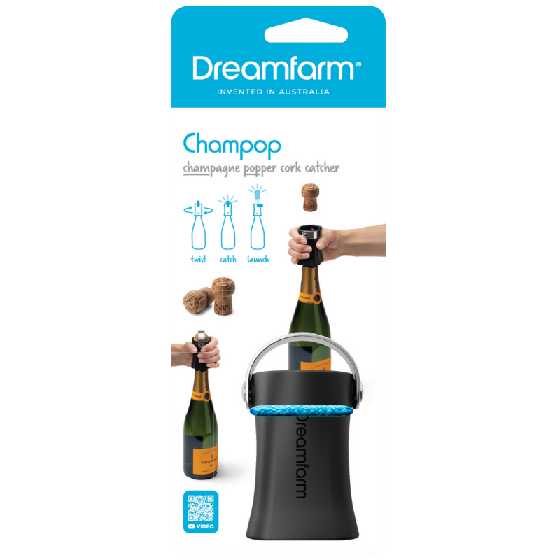 Champop champagneprop fjerner Champop fra Dreamfarm er en smart og brugervenlig champagneprop-fjerner, der sikkert åbner og fanger proppen fra champagne og mousserende vine, eller lader den flyve op i luften ved festlige lejligheder.