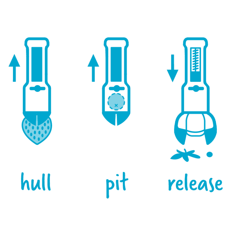 Hullapit kirsebær udstener Hullapit Berry huller and pitter er et 3-i-1 redskab, der skræller jordbær, udstener kirsebær og oliven og opsamler deres sten. Hullapit kombinerer en jordbær- og