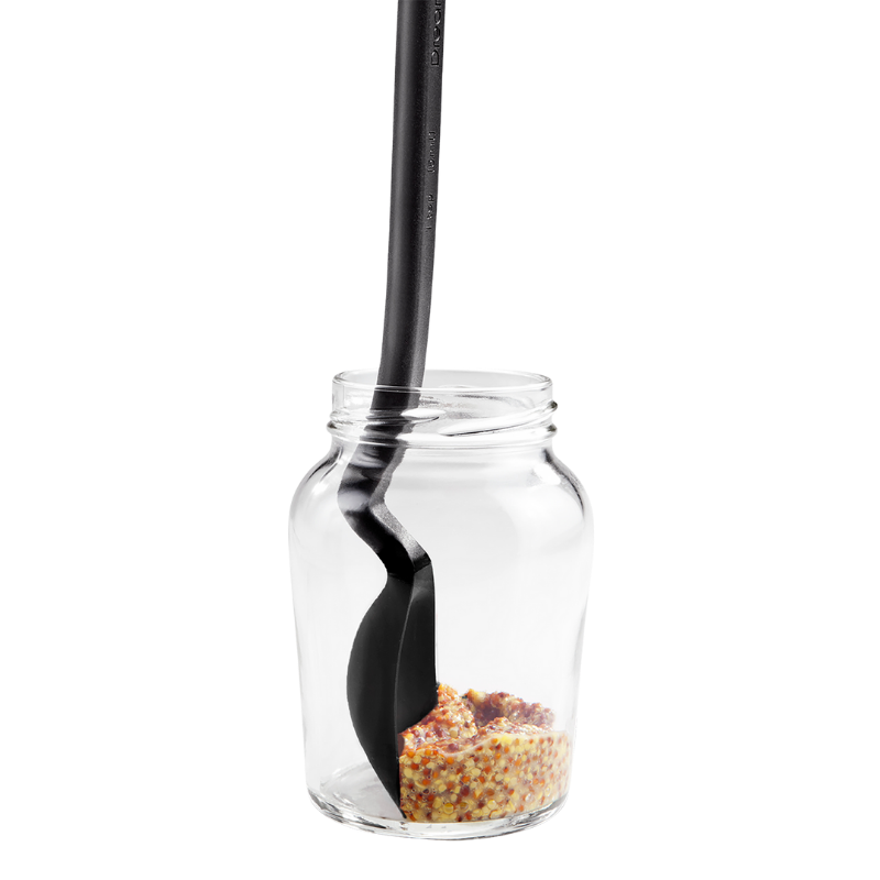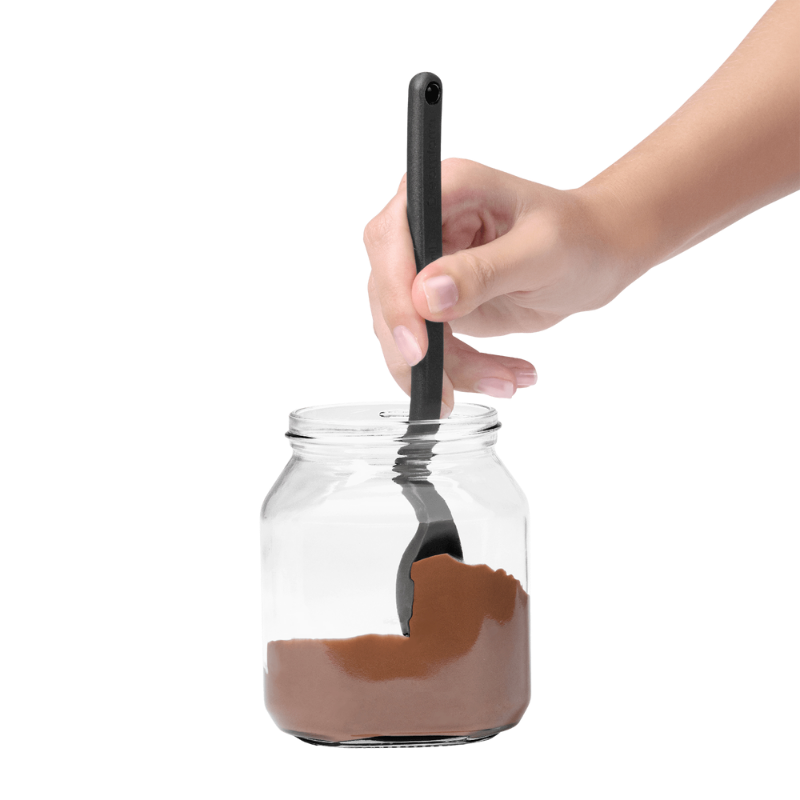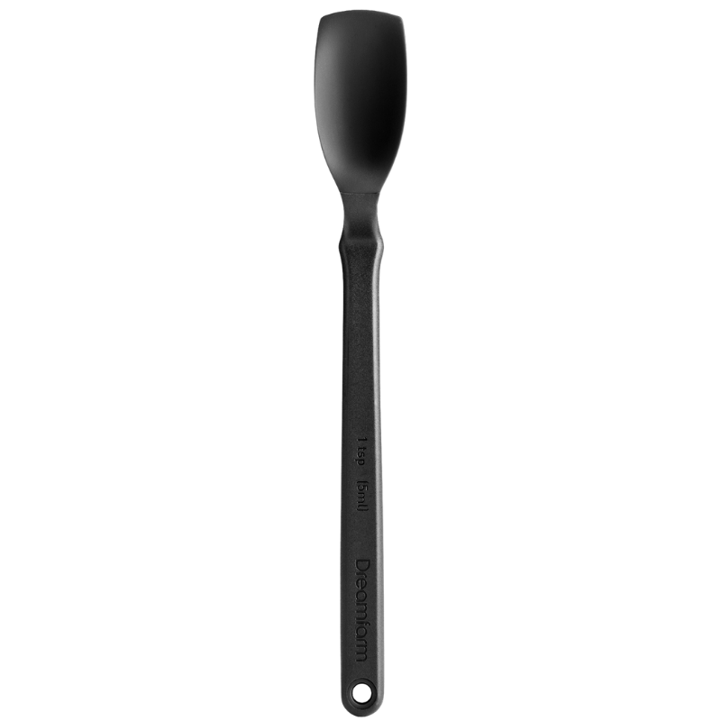 Mini Suppon nutellaske Mini Supoon er mini-varianten af Dreamfarms klassiker Supoon - verdens bedste kogeske. Den har en flad gummiskraberspids og fleksible skrabesider, som gør den fantastisk til at skrabe den sidste lille rest ud af en beholder eller et nutellaglas. Skeen kan også bruges til præcist teskemål under madlavning og bagning, og er designet med et knæk på håndtaget, som gør, at den ikke kommer i kontakt med underlaget. Materiale er nylon og silikone. Tåler opvaskemaskine. Fri for BPA.