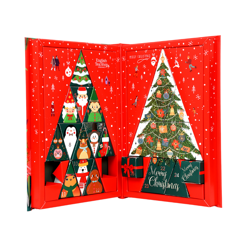 Nu det jul igen med English Tea Shop Oplev magien i juletiden og åben op for denne flotte te julekalender fra English Tea Shop, med smukt juletræ indeni.