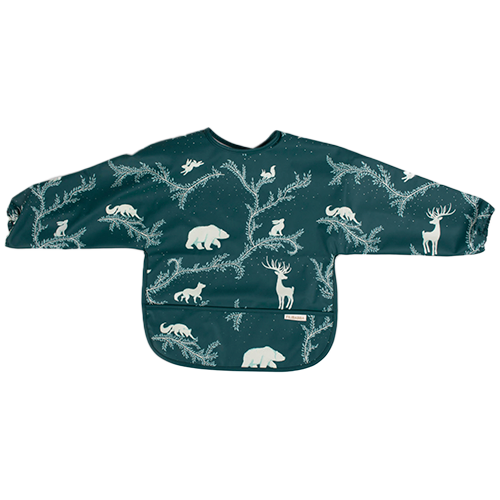 Beskyt dit barns tøj under måltiderne med denne hagesmæk med ærmer fra Filibabba. Den er fremstillet af bløde materialer, der giver god beskyttelse og komfort, mens dit barn spiser og udforsker mad.