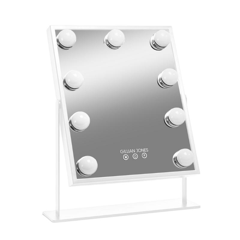 Gillian Jones Makeupartist Spejl er designet til at give dig de optimale forudsætninger for at lægge en fejlfri makeup. Spejlet er udstyret med ni kraftige LED-pærer, der efterligner dagslys og sikrer en jævn belysning uden skygger. Dette gør det nemmere at se detaljer klart, så du kan opnå et professionelt resultat hver dag, uanset lysforholdene i rummet.