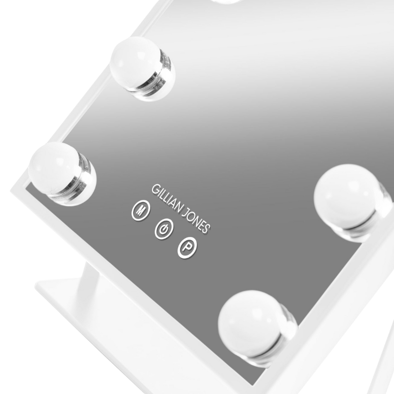 De ni LED-pærer i Gillian Jones Makeupartist Spejl er strategisk placeret for at give en ensartet og skyggefri belysning over hele ansigtet. Lyset er udviklet til at gengive farver naturtro, hvilket er afgørende for præcis påføring af foundation og valg af de rette nuancer. Det stilrene, hvide design gør spejlet til en elegant detalje på makeupbordet eller badeværelset.