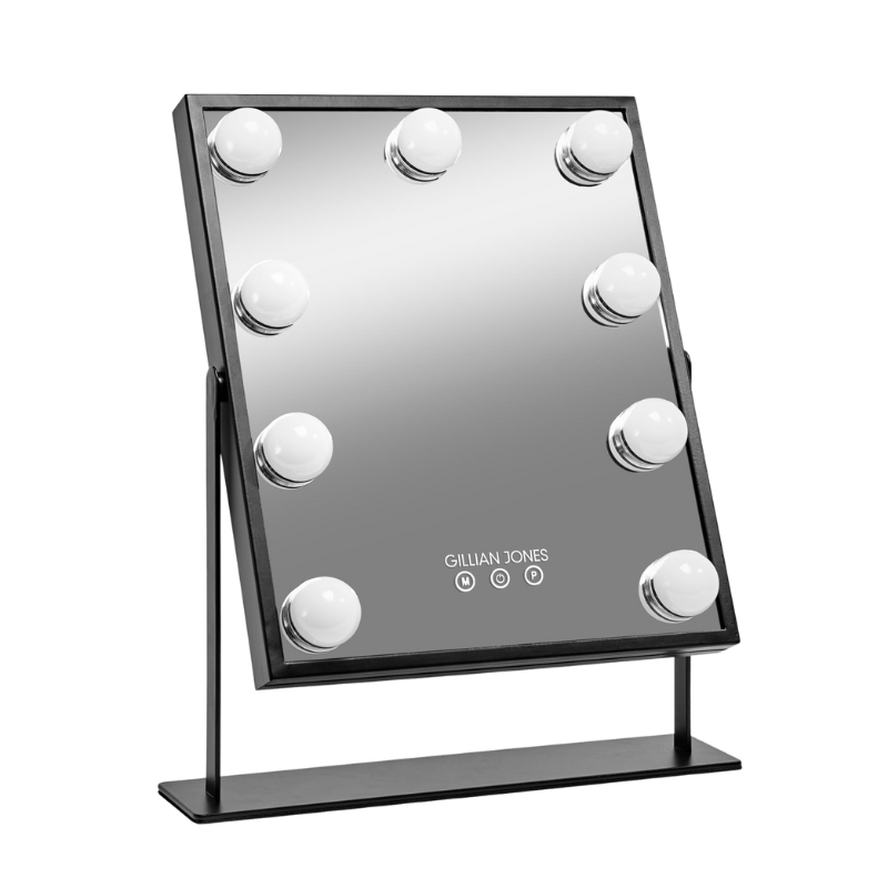 De ni strategisk placerede LED-pærer i Gillian Jones Makeupartist Spejl M. 9 Kraftige LED Pærer Sort (1 stk) sikrer en jævn belysning uden skygger. Lyset er designet til at efterligne dagslys, hvilket er afgørende for korrekt farvevurdering og for at kunne blende din makeup perfekt. Spejlets robuste konstruktion og stilrene sorte design gør det til en både holdbar og elegant tilføjelse til dit makeupbord, der hjælper dig med at se selv de mindste detaljer med præcision.
