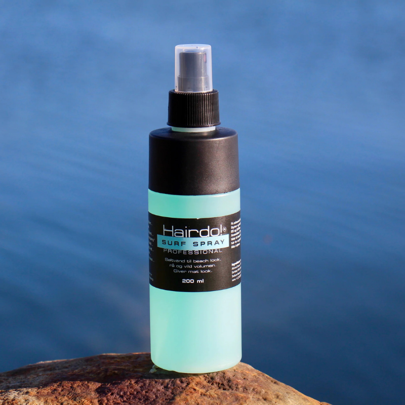 HairDo Surf Spray (200 ml) Kunne du tænke dig et friskt strandhårslook året rundt? Det kan du få med Surf Spray fra Hairdo! Vores saltvandsspray tilfører både håret vild og rustik volumen og sikrer samtidig at frisuren holder. Med kun et par enkelte sprøjt får håret et mat look, styrkes med pro-vitamin B5 og beskyttes med UV-filter.