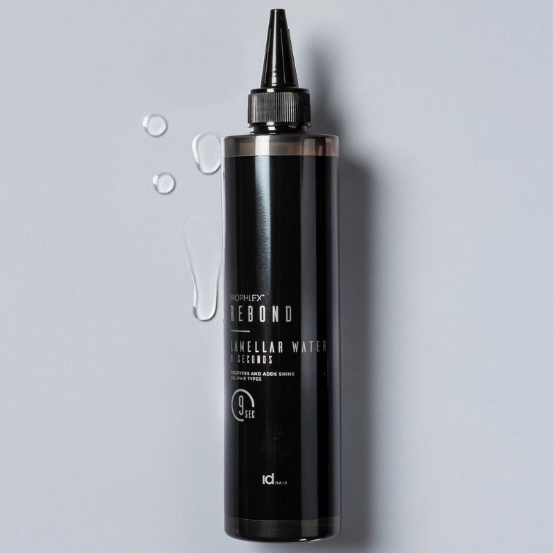 IdHAIR Niophlex Rebond Lamellar Water Højglans på rekordtid. Niophlex Rebond Lamellar Water er en vandbaseret behandling, der virker på bare 9 sekunder og efterlader håret med spejlblank glans og silkeblød fornemmelse. De lamellære partikler arbejder målrettet i hårets længder, udglatter overfladen og forsegler fugten – alt sammen uden at tynge. Botanical Protein Complex bidrager samtidig til at styrke hårets struktur og fremme sundheden i dybden. Bruges efter shampoo og før conditioner eller maske. En gamechanger i enhver hårplejerutine, der kræver hurtige resultater med salonfinish.