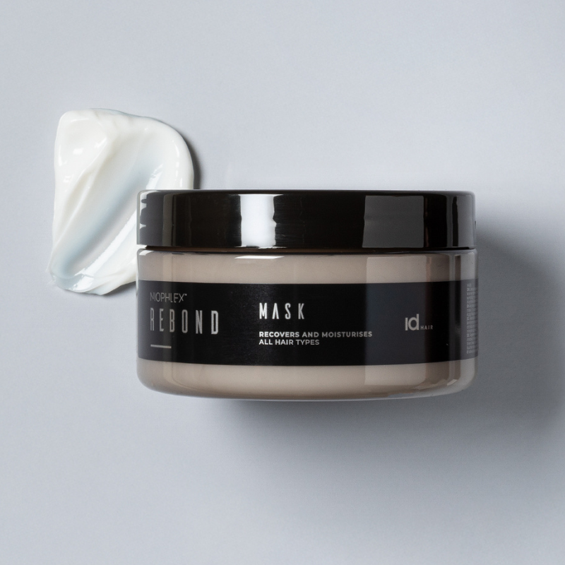 IdHAIR Niophlex Rebond Mask Giv håret en styrkende timeout med Niophlex Rebond Mask – en intensiv behandling, der arbejder målrettet på at genopbygge og beskytte skadet og kemisk behandlet hår. Formlen er beriget med Botanical Protein Complex, som styrker hårets indre struktur og genskaber elasticitet og modstandskraft. Den cremede tekstur smelter ind i håret og leverer fugt, glans og styrke i dybden – uden at tynge. Brug den én gang om ugen, eller når håret har brug for ekstra pleje. Resultatet er et synligt sundere hår med mere fylde, blødhed og styrke.