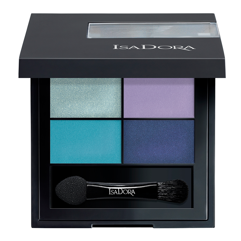Personlig pleje. IsaDora Eyeshadow Quartet Ocean Breeze (3,5 g) er en pigmenteret, petite og praktisk øjenskygge palette med fire smukke øjenskygger i en palette i 4 nuancer, der passer smukt sammen. Disse fire øjenskygger har hver forskellige intensiteter, så du let kan skabe et look til både dag og aften. Paletten kommer med en dobbeltsidede applikator og et indbygget spejl.