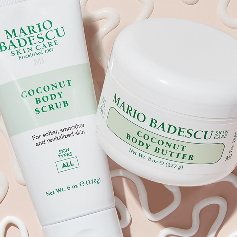 Mario Badescu Coconut Body Butter Nær og fugt din tørre hud på kroppen med denne luksuriøse, blødgørende creme, der er beriget med en kombination af Shea Butter og Mango Butter samt nærende Argan Oil, Apricot Oil og Rosehip Oil.