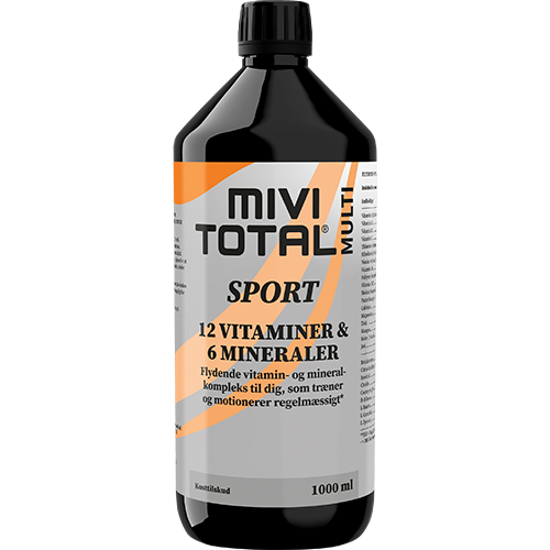 Flydende multivitamin med vitaminer og mineraler for hele familien fra 3 år. Mivitotal® Sport indeholder 12 vitaminer og 6 mineraler.