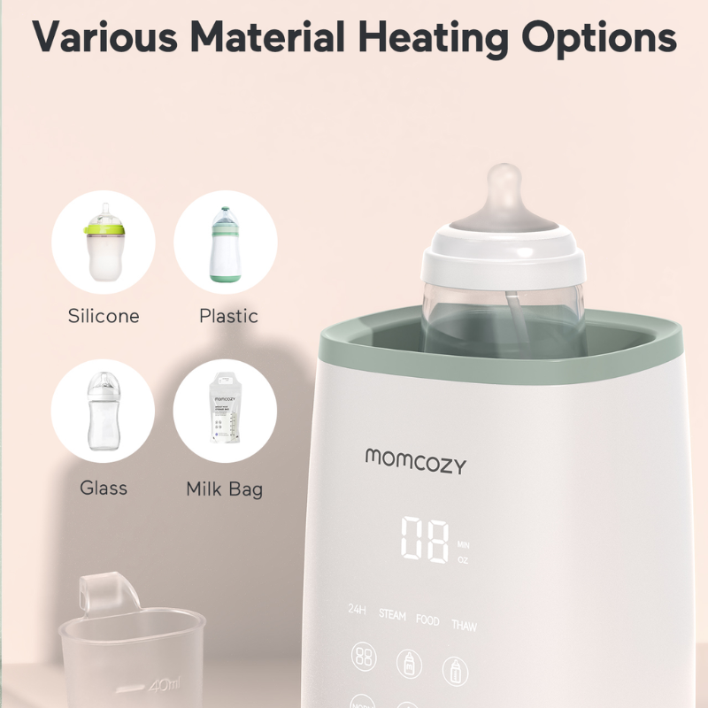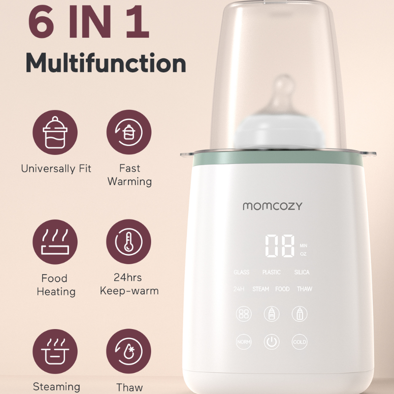 6-i-1 flaskevarmer med hurtig, skånsom opvarmning Momcozy MW01 6-i-1 hurtigt babyflaskevarmer forenkler madningen med intuitive knapper - vælg blot mælke-status, flaske materiale og volumen. Den opvarmer automatisk til den optimale temperatur, som bevarer næringsstoffer og hjælper dit barns fordøjelse.