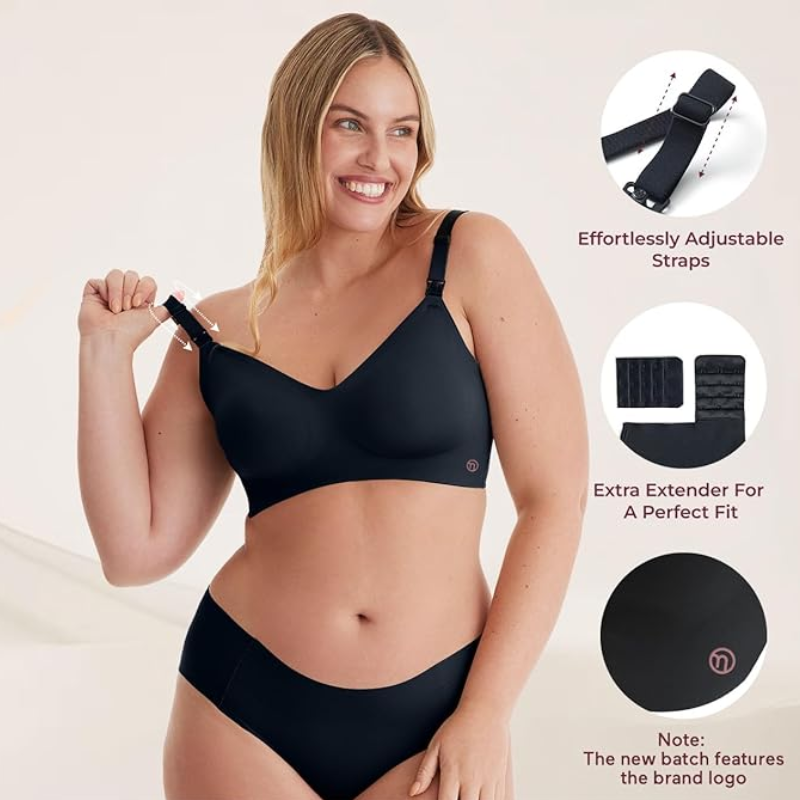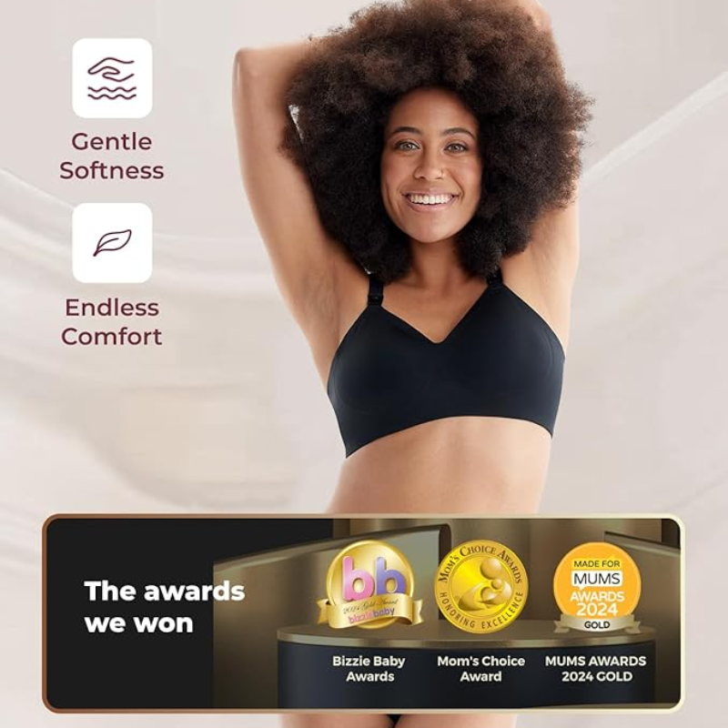 Nyd stressfri brug med justerbare puder og en blød, fleksibel kant. En-hånds spændet muliggør nem amningstilgang, mens bh'en også fungerer som en bærbar pumpe-bh for ekstra bekvemmelighed. Ideel til amning, graviditet, søvn og lette træningssessioner.Godt at vide: