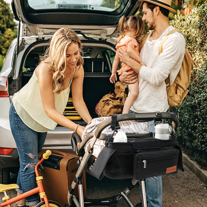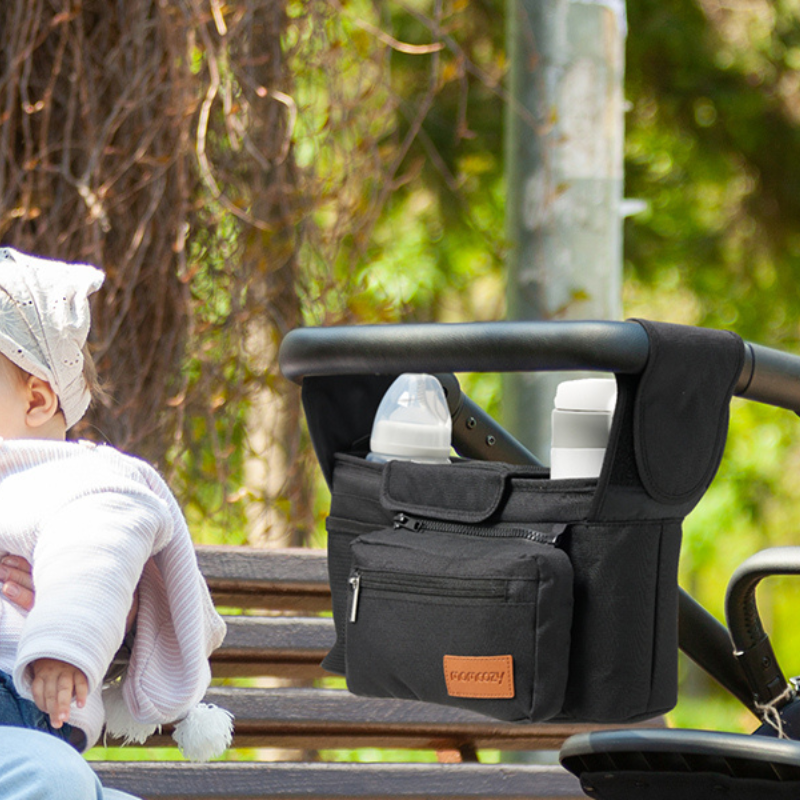 Holder sikkert på flasker og kopper, samtidig med at essentielle genstande som telefoner, bleer eller privatlivsartikler er inden for rækkevidde. Organizeren hjælper med at holde dine ejendele i orden, hvilket gør udflugter med din baby mere praktiske og stressfrie.Godt at vide: