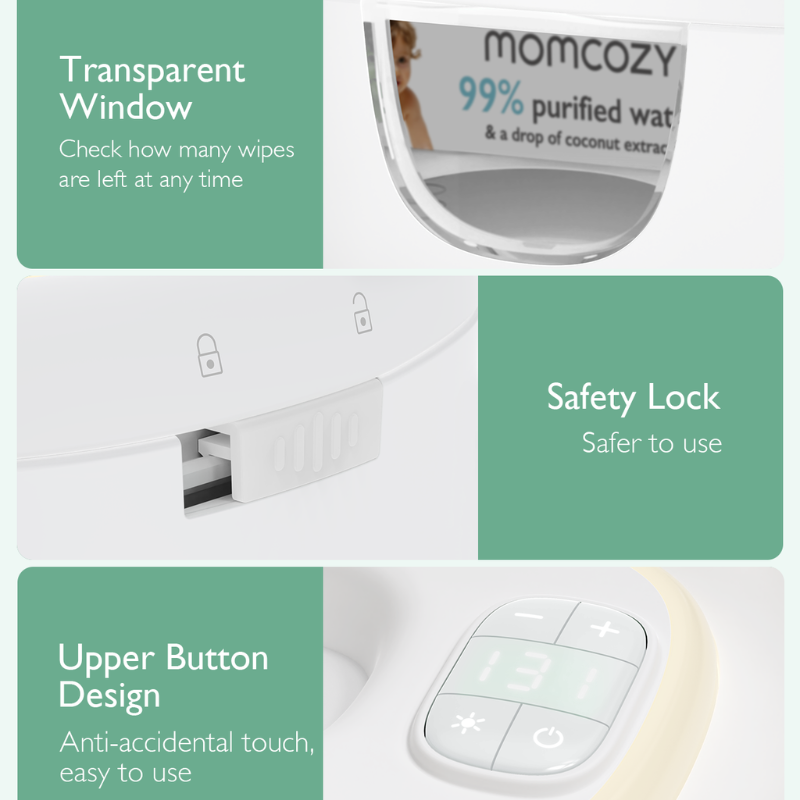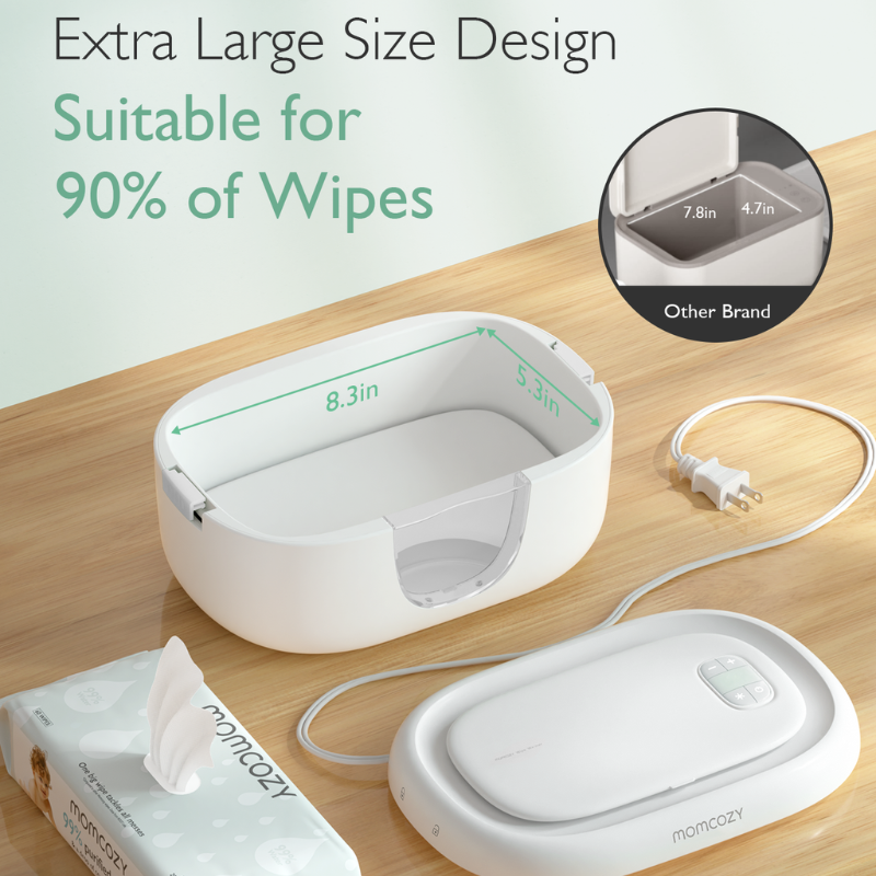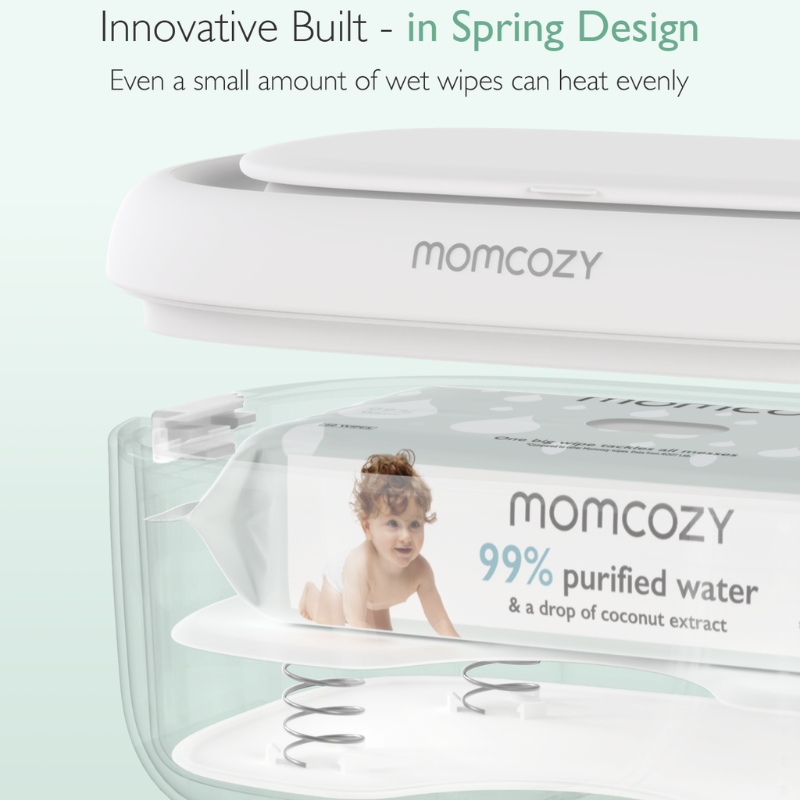 Momcozy Large Capacity Baby Wipe Warmer har et innovativt indbygget fjederdesign til hurtig, jævn opvarmning, der sikrer, at vådservietter forbliver ved den perfekte temperatur. Den aftagelige fjeder tilpasser sig varierende mængder af vådservietter for ensartet varme. Designet til bekvemmelighed, rummer varmeren store pakker vådservietter og opretholder optimal fugt, hvilket forhindrer, at servietter tørrer ud. Dens brugervenlige design gør bleskift mere komfortable for dit barn, dag og nat.Godt at vide: