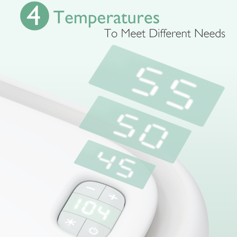 - 4 temperaturindstillinger: Vælg mellem 40°C, 45°C, 50°C eller 55°C for personlig komfort