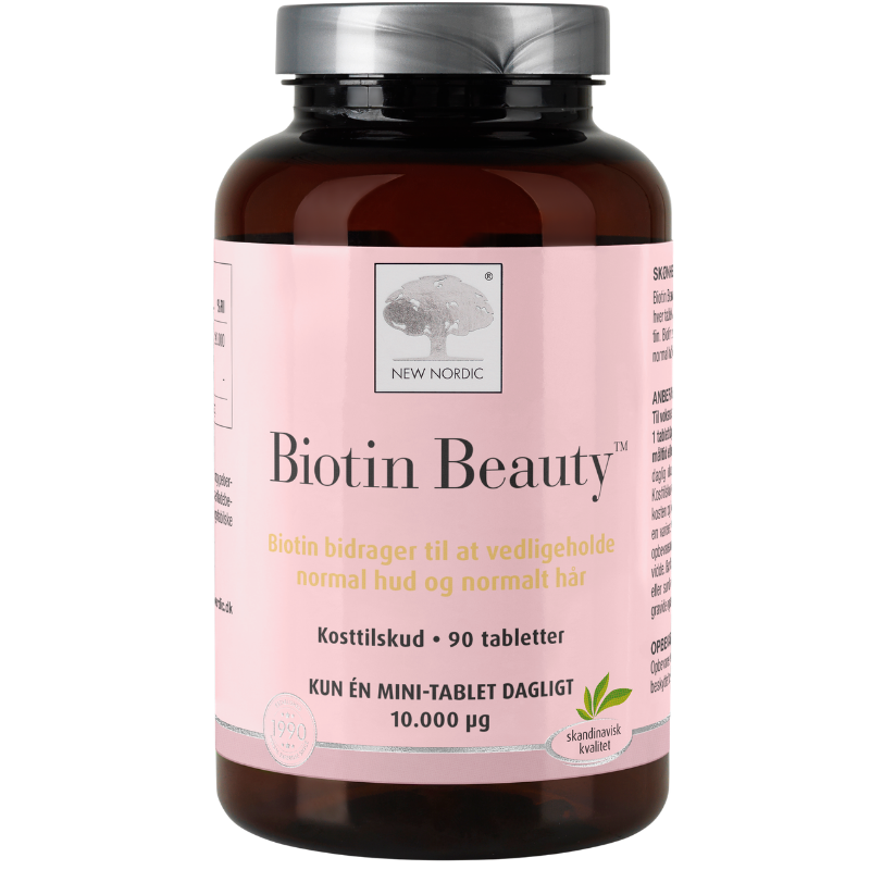 New Nordic Biotin Beauty Biotin Beauty™ er et kosttilskud, hvor hver tablet indeholder 10.000 mcg biotin.