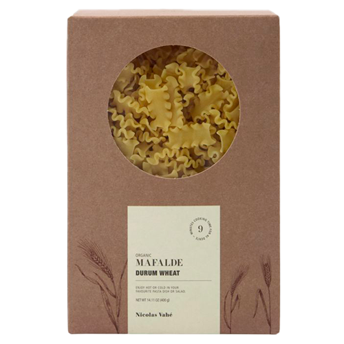 Nicolas Vahé Mafalde Durum Wheat Ø er en økologisk pasta, skabt til at forvandle hverdagsretter til en særlig oplevelse. Denne pasta er fremstillet af durumhvede af høj kvalitet, som giver en autentisk smag og konsistens. Den unikke, bølgede form er ikke kun visuelt tiltalende, men også funktionel, da den effektivt fanger og holder på din yndlingssauce. Det er et oplagt valg for dig, der værdsætter kvalitet og smag i den daglige madlavning.