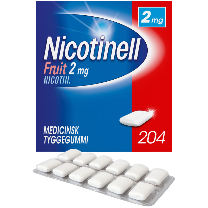 Nicotinell Fruit tyggegummi indeholder nikotin og bruges som hjælpemiddel til rygeophør. Når tyggegummiet anvendes, frigives nikotin langsomt, hvilket dæmper rygetrang og gør abstinenser mindre udtalte. Fruit-smagen giver en frisk og frugtagtig oplevelse, som mange foretrækker under rygestoppet. Produktet findes i 2 mg og 4 mg styrker, og valget afhænger af den enkeltes rygevaner og behov. Tyggegummiet er beregnet til voksne over 18 år og bør bruges i overensstemmelse med anbefalingerne på indlægssedlen. Det anbefales at kombinere behandlingen med rådgivning eller støtteprogrammer for at øge chancen for et succesfuldt rygestop. Overskrid aldrig den maksimale daglige dosis, og opbevar produktet utilgængeligt for børn, da nikotin er giftigt for dem.