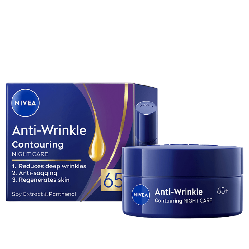 Mere om produktet NIVEA Anti-Wrinkle Contouring 65+ Night Cream reducerer synligt linjer og fine rynker og forbedrer ansigtets konturer. Hudens egen fornyelsesproces stimuleres i løbet af natten, hvilket understøtter regenereringen af krævende, moden hud. Formlen er beriget med soyaekstrakt, jojobaolie og panthenol, der tilfører tør hud nærende fugt.