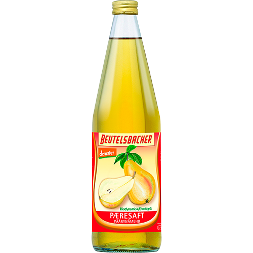 Økologisk pæresaft fra Beutelsbacher med Demeter-mærke, som smager sødt og mildt. Denne er fremstillet af solmodne pærer og fremstillet biodynamisk.