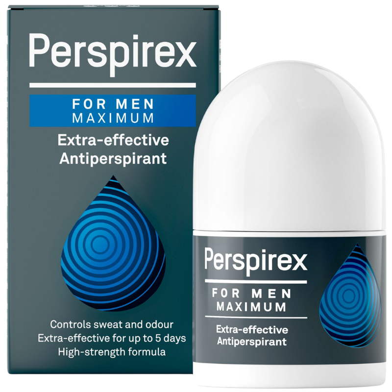 Maximum For Men Extra-effective Antiperspirant Perspirex for Men Maximum er en klinisk dokumenteret og ekstra effektiv antiperspirant til ekstrem svedproduktion, der beskytter mod både sved og lugt i op til 5 dage. Perspirex for Men Maximum er løsningen for mænd, der oplever deres svedtendens som ekstrem og problematisk hver eneste dag. Perspirex for Men Maximum giver op til 5 dages pålidelig beskyttelse - selv efter brusebad og svømning.