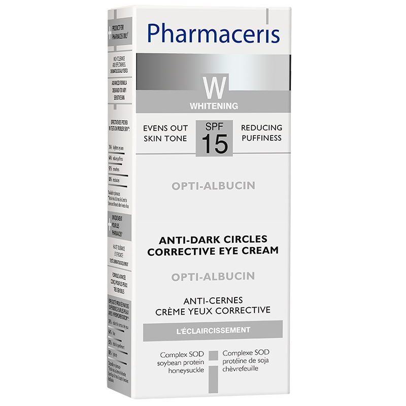 Albucin-korrigerende øjencreme lysner huden og reducerer hævelser og mørke rande under øjnene. Solfiltre blokerer 93% af UVB-stråling og beskytter den sarte hud omkring øjnene. Brug dagligt og som en base under makeup.