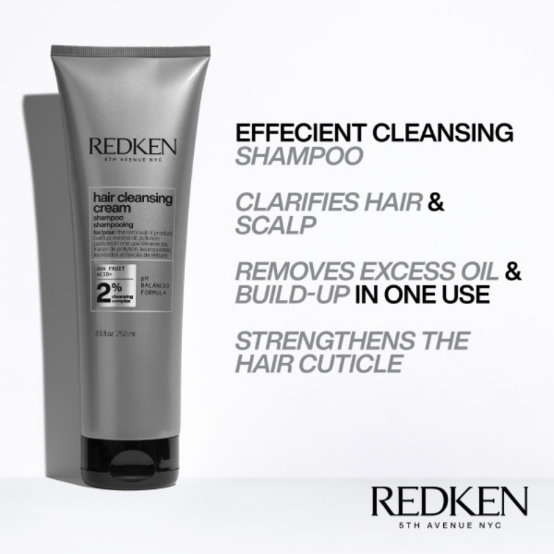 Personlig pleje. Redken Hair Cleansing Cream Shampoo (250 ml) er en særligt shampoo til alle hårtyper, der er fremstillet med en cremet tekstur, der skånsomt renser hår og hovedbund for alt fra tørshampoo og produktrester.