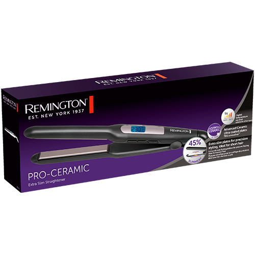 Remington Pro-Ceramic Extra Slim Glattejern er designet til dig med kort hår, der ønsker præcis og nem styling. De unikke, ekstra smalle plader giver dig fuld kontrol, så du nemt kan nå helt ind til hårrødderne. Dette stylingværktøj gør det muligt at skabe et glat og elegant look, hvilket gør din daglige rutine både hurtigere og mere effektiv.