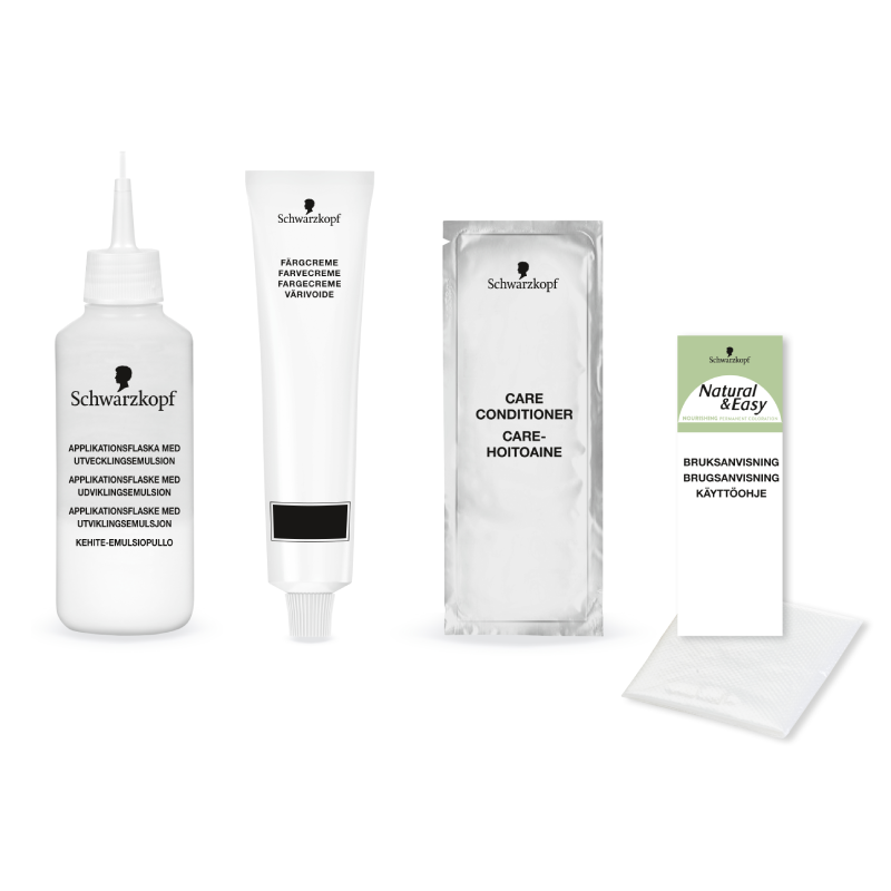 "Hårfarvestoffer kan fremkalde alvorlige allergiske reaktioner.\n Læs og følg brugsanvisningen. \n Dette produkt er ikke beregnet til brug på personer under 16 år.\n Midlertidige tatoveringer med sort henna kan øge risikoen for allergi. Man skal ikke farve sit hår, hvis: \n — man har udslæt i ansigtet eller en følsom, irritabel og beskadiget hårbund,\n — man tidligere har haft en reaktion efter hårfarvning,\n — man tidligere har haft en reaktion på en midlertidig tatovering med sort henna.\n Indeholder hydrogenperoxid, phenylendiaminer (toluendiaminer), resorcinol og ammoniak. Ingredienser: Se bunden af pakningen.\n Må ikke komme i berøring med øjnene. Er produktet kommet i berøring med øjnene, skal de straks skylles. Må ikke anvendes til farvning af øjenvipper og -bryn. Håret skylles grundigt efter brug. Anvend egnede beskyttelseshandsker.\n Hver gang du farver hår, bør du foretage en advarselstest for allergi 48 timer før (se brugsanvisningen), også selvom du har farvet dit hår tidligere.\n Husk derfor at købe produktet mindst 48 timer i forvejen. I tilfælde af reaktion, eller hvis du er i tvivl, kontakt en læge før du anvender et hårfarvningsprodukt. Opbevares utilgængeligt for børn."