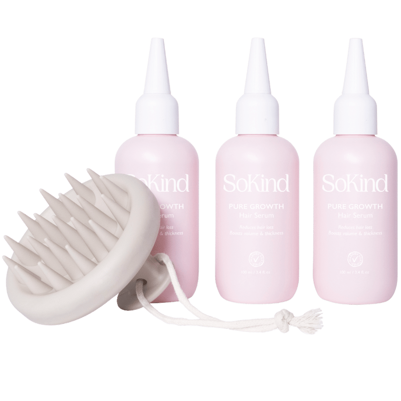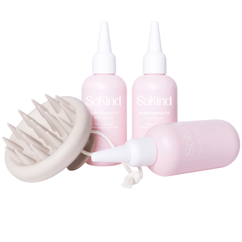SoKind Hair Growth Set er et hårplejesæt udviklet til kvinder, der oplever, at håret føles tyndere eller fælder mere end normalt. Sættet er skabt til at imødekomme denne udfordring ved at kombinere videnskab med naturlige ingredienser. Produkterne arbejder målrettet på at stimulere hovedbunden og styrke håret, hvilket gør sættet til en ideel løsning for at genvinde følelsen af et sundt og mere fyldigt hår i hverdagen.