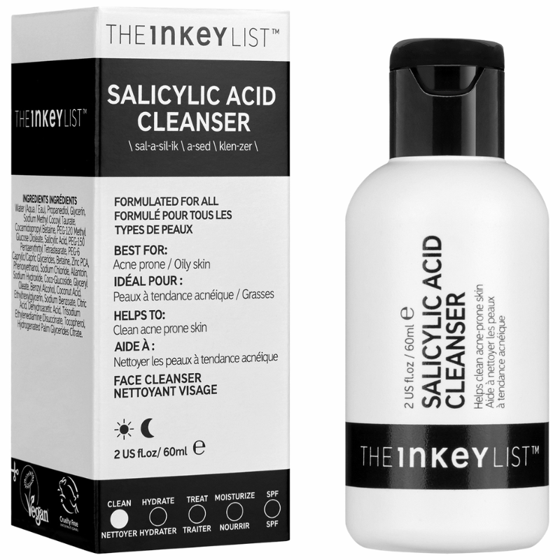 Salicylic Acid Cleanser 60ml The INKEY List's bestselling Salicylsyre Rens i en praktisk 60 ml mini størrelse. Specialt formuleret til problemhud, kombinationshud og fedtet hud, er vores Salicylsyre Rens din ultimative ansigtsrens, der synligt reducerer blackheads og udbrud for en klarere hudtone. Skånsom nok til daglig brug, den ikke-udtørrende eksfolierende gelrens hjælper med at rense porerne og fjerne snavs, urenheder og overskydende olie, så huden føles helt ren. Den aktive ingrediens salicylsyre (BHA) understøtter hudens naturlige eksfolieringsproces og hjælper med at rense tilstoppede porer, så de ser mindre synlige ud. Tilføjelsen af zinkforbindelser reducerer overskydende olie på hudens overflade, mens allantoin hjælper med at berolige og lindre hud, der er tilbøjelig til udbrud.
