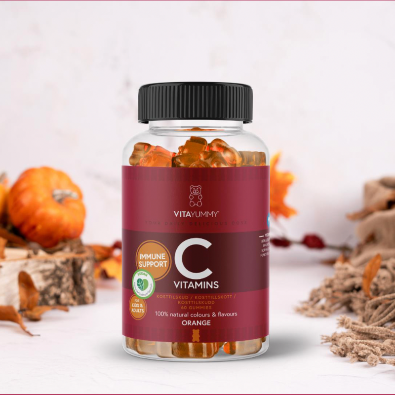 VitaYummy Vitamin C er vegansk og fri for kunstige søde-, farve-, smagsstoffer.
