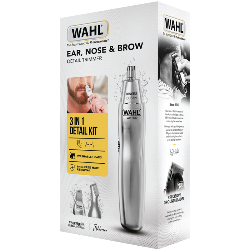 Dette smarte 3-i-1 sæt fra WAHL indeholder flere specialiserede hoveder til forskellige formål. Det roterende hoved er ideelt til nænsom hårfjerning i næse og ører, mens detaljehovederne giver mulighed for præcis formning af øjenbryn og bakkenbarter. WAHL Næse/Ørehårstrimmer 3 i 1 er designet til at klippe hårene rent over uden at hive, hvilket sikrer en behagelig og smertefri oplevelse hver gang du bruger den.