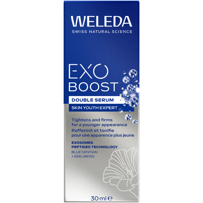To faser forenet i ét kraftfuldt serum, der effektivt bekæmper alderstegn. Oplev den perfekte synergi mellem natur og innovation med EXO BOOST Double Serum.