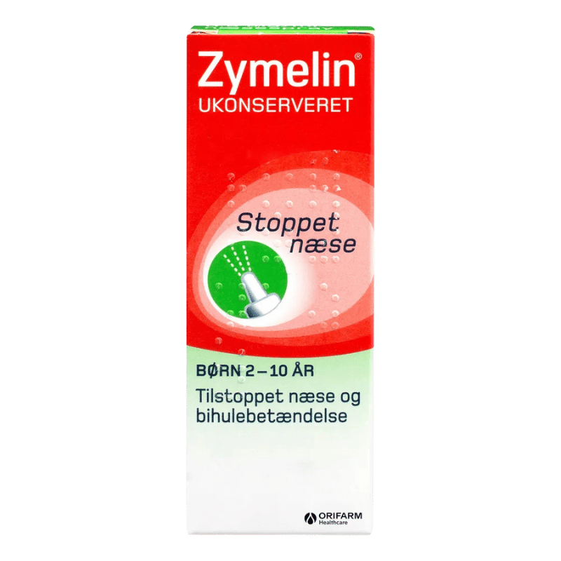 Næsespray der anvendes ved forkølelse med tilstoppet næse. Zymelin ukonserveret virker ved at sammentrække de små blodårer i den hævede næseslimhinde og dermed forbedres luftgennemstrømningen.
